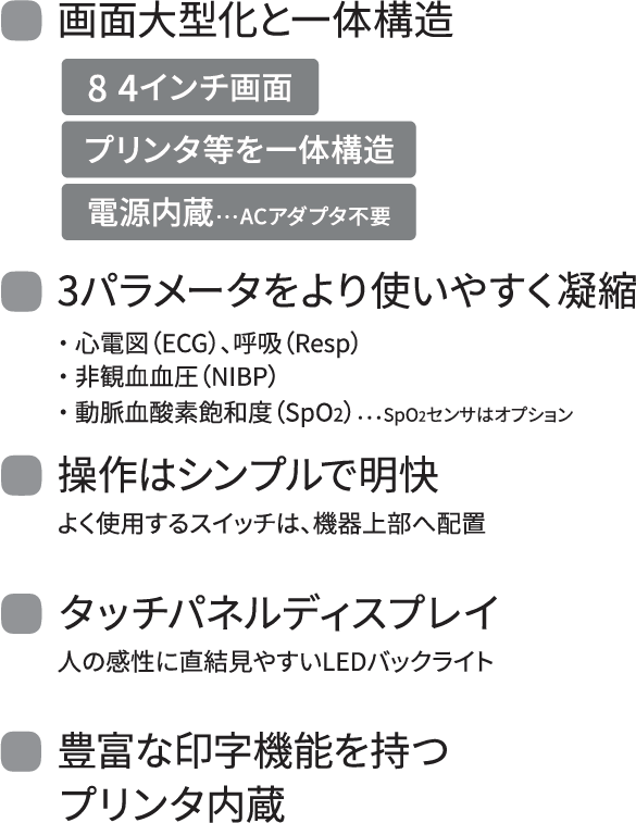 生体情報モニタ TM-2591M TM-2591M メーカーサイト:https://www.aandd.co.jp/products/medical/equipment/me-vitalsensor/tm2591/ 仕様 商品名 バイタルセンサRシリーズ 販売名 バイタルセンサR TM-2591 認証番号 304AHBZX00037000 一般的名称 多項目モニタ 類別 機械器具21内蔵機能検査用器具 医療機器の分類 管理医療機器、特定保守管理医療機器 表示装置 タッチパネル式 8.4インチTFT液晶 外形寸法 236(W)×230(H)×122(D)mm 質量 約2.4kg JANコード 4981046220965 商品コード TM-2591M-JC16 製造販売業者 株式会社エ-・アンド・デイ
